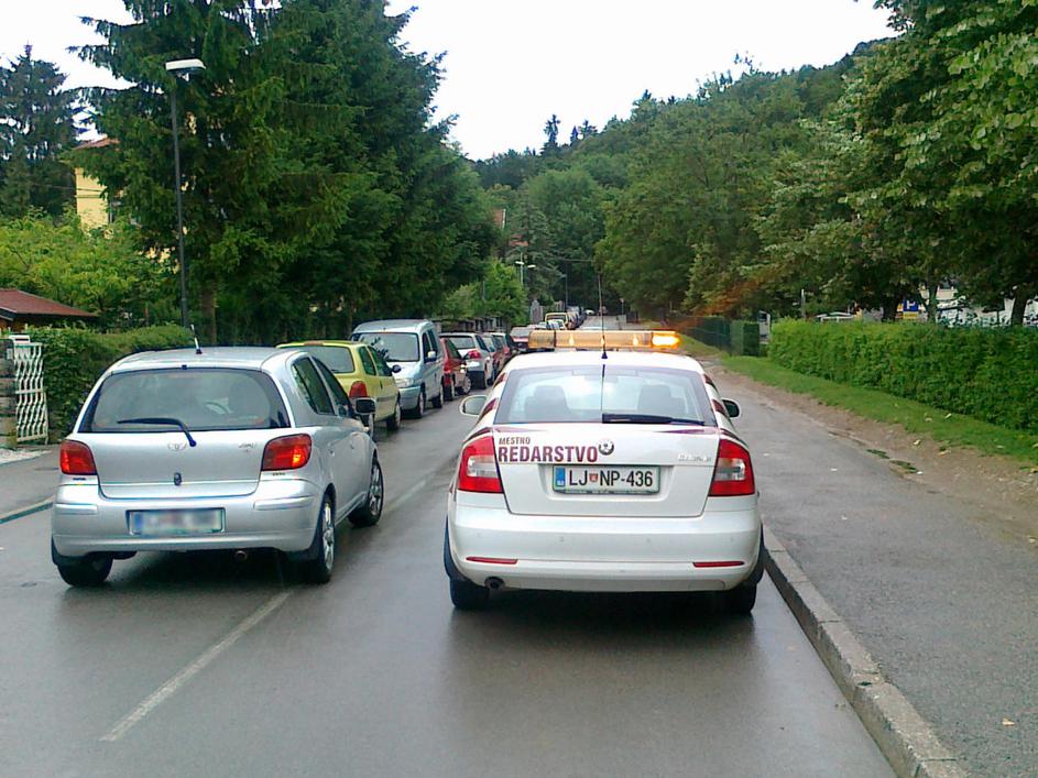 Redar si je v Rožni dolini na Šcrabcevi ulici privoščil privilegij in avto parkiral kar sredi ceste.