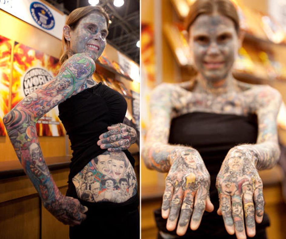 Julia Gnuse ima potetoviranih 95 odstotkov svojega telesa, zato se je vpisala v Guinnessovo knjigo r
