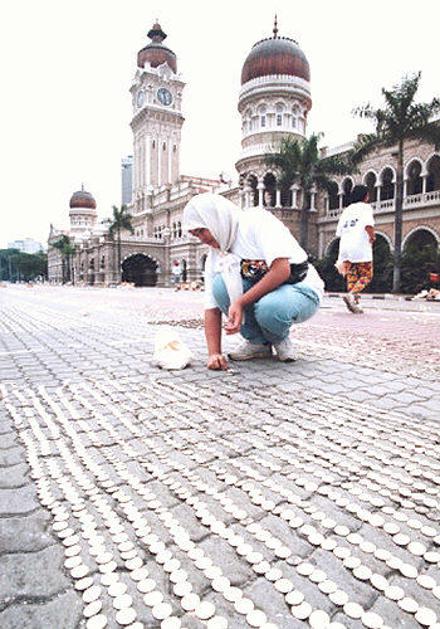 Skupina Malezijcev trdi, da je podrla rekord, saj so s kovanci ustvarili najdaljšo vrsto kovancev, d