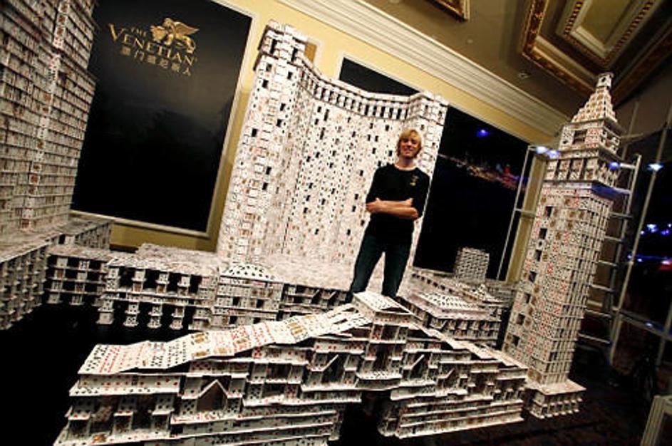 Bryan Berg je januarja podrl svoj lasten rekord in z 218.792 kartami sestavil repliko beneškega hote