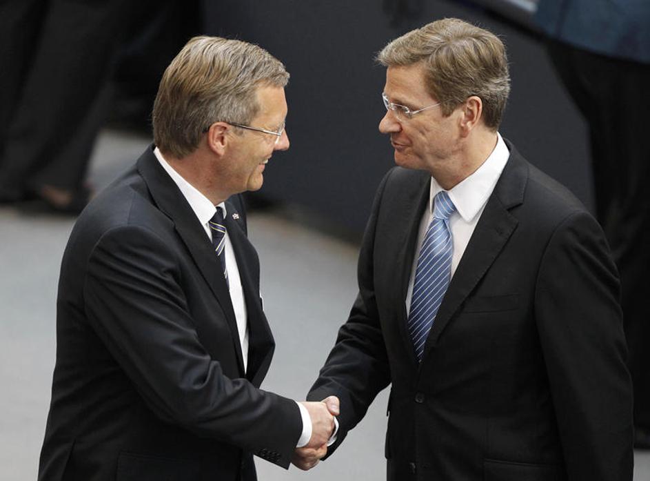 Wulff med rokovanjem z nemškim zunanjim ministrom Guidom Westerwellejem. Žurnal24