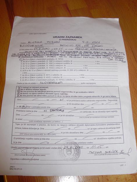 Kot pravi Alenka, je prvikrat policisti sploh niso seznanili z njenimi pravicami, čeprav na tem doku
