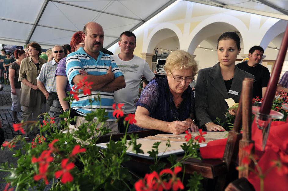 Sledi podpisovanje obiskovalcev, ki so se žrtvovali, da bodo pred vsemi drugimi preverili kakovost p