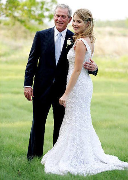 Nekdanji predsednik George W. Bursh je svojo hčerko Jenno pred oltar pospremil 10. maja 2008, ko je