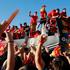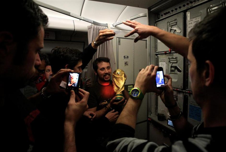 Tudi novinarji so pristavili svoj piskrček k slikanju s pokalom.
