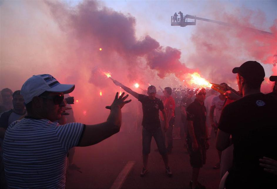 Navijači Olympiacosa so Albertu Rieri pripravili veličasten sprejem.