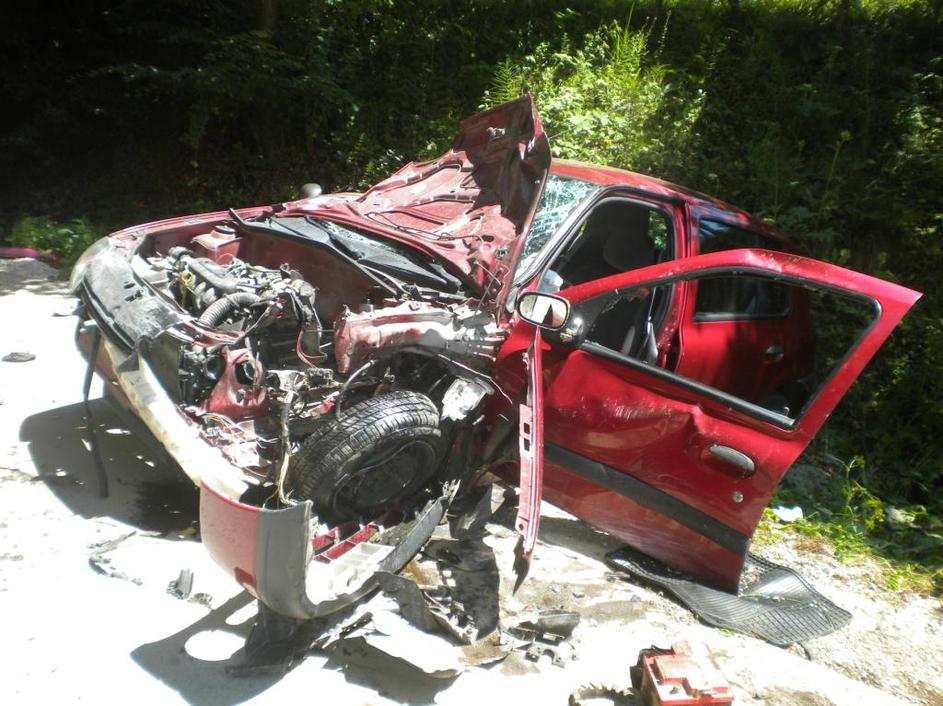 Voznica osebnega vozila se je zaletela v delovni stroj in pri tem utrpela lažje telesne poškodbe. Žurnal24