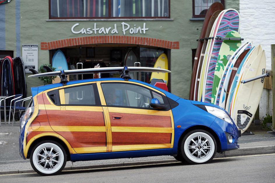 Lesene obrobe vrat, belo obrobljene pnevmatike in seveda surf na strehi so zaščitni znak sparka wood