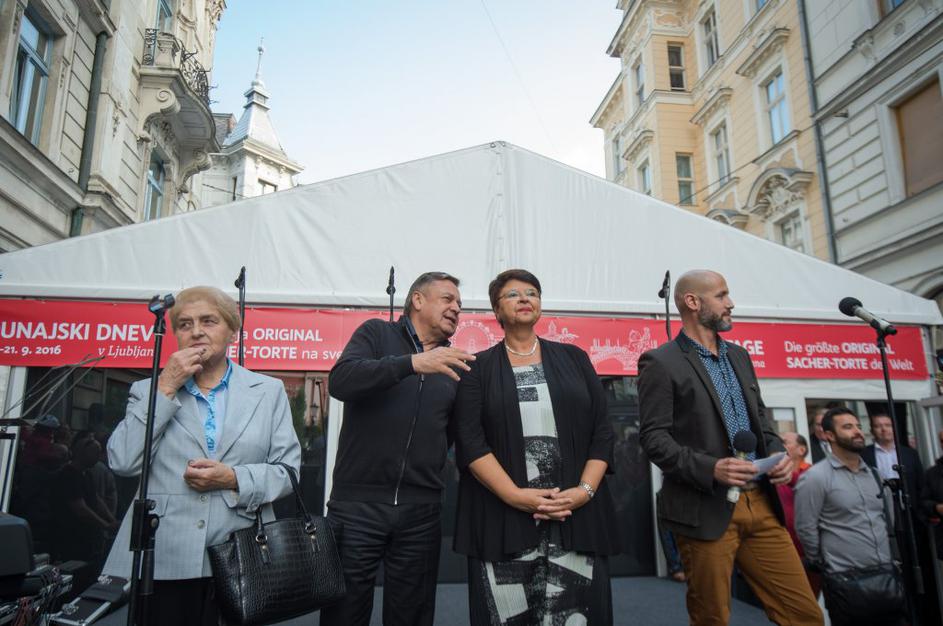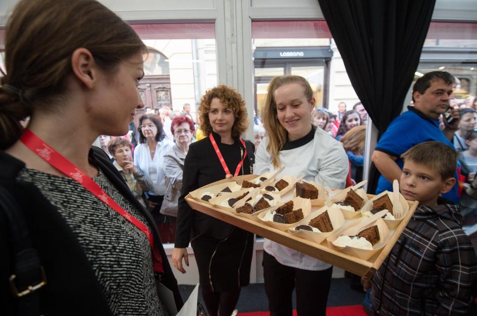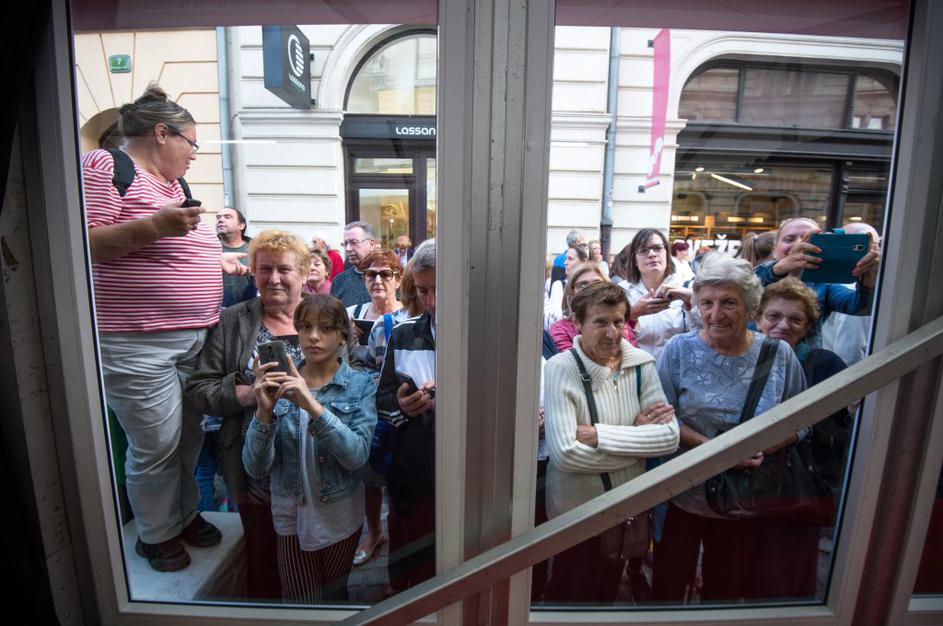 Množica ljudi čakala na košček torte