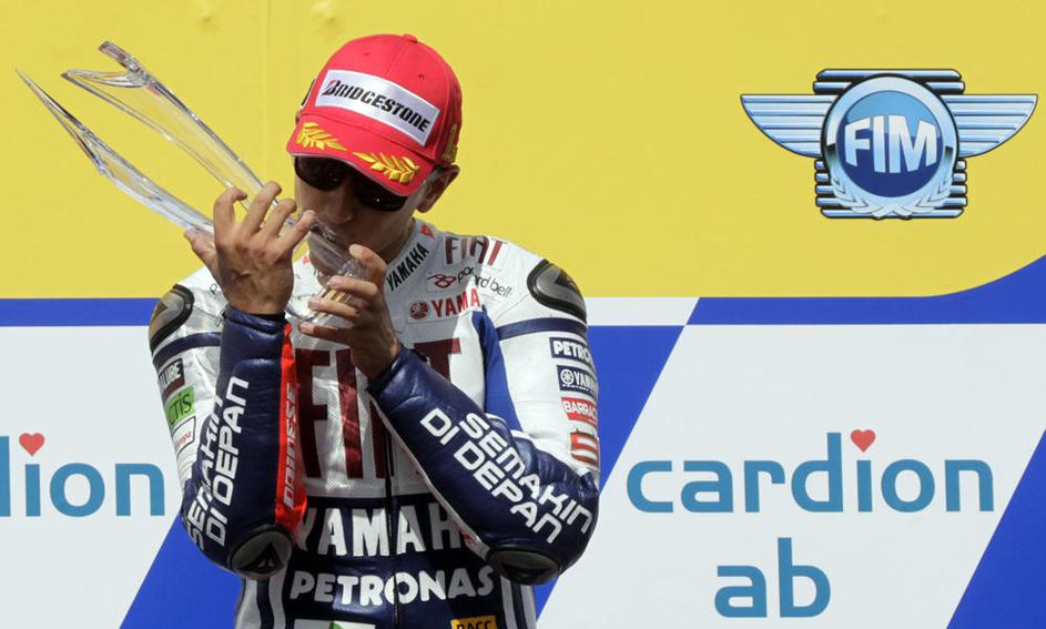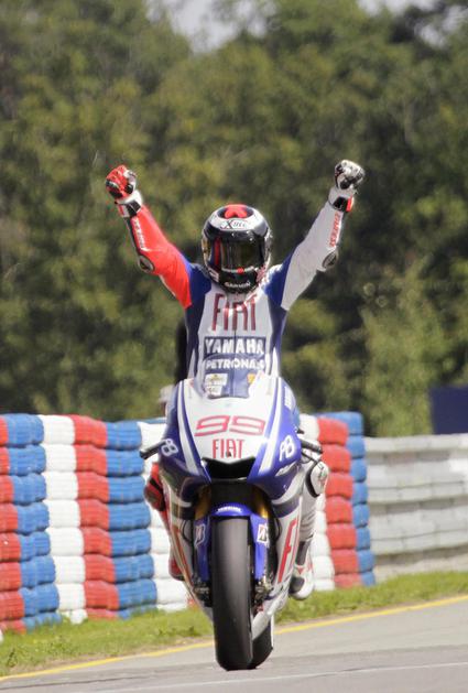 Jorge Lorenzo v trenutku, ko je prevozil ciljno črto. (Foto: Reuters)