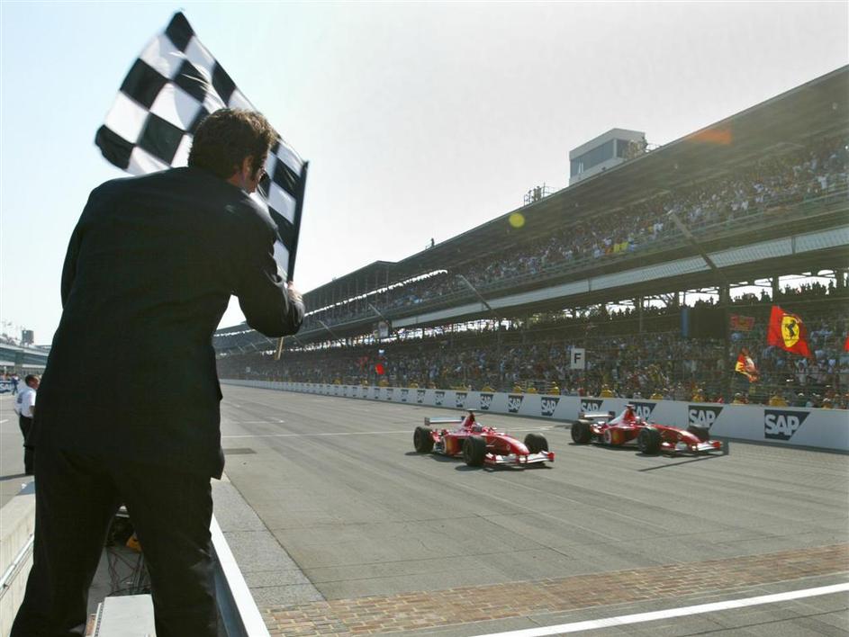 5. zmaga: VN ZDA, Indianapolis, 2002 (Ferrari) – Schumacher je pred ciljno črto spustil plin in zmag