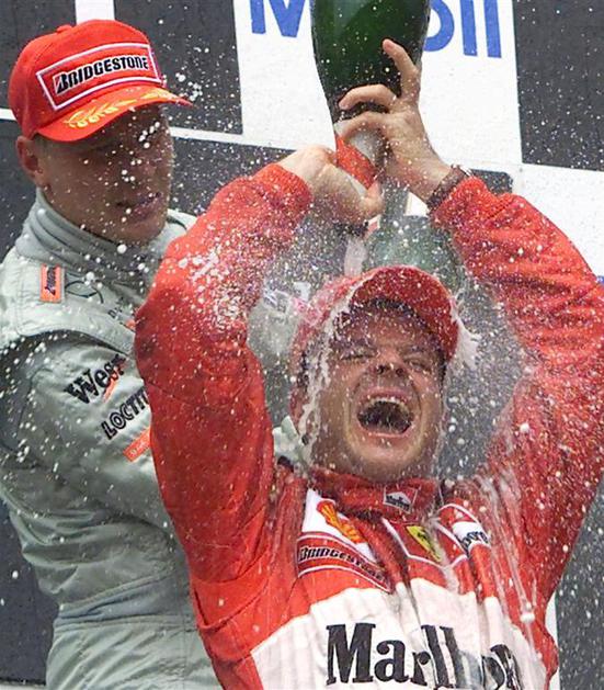 1. zmaga: VN Nemčije, Hockenheim, 2000 (Ferrari) – Na mokro-suhi dirki je Rubens zmagal s 18. startn