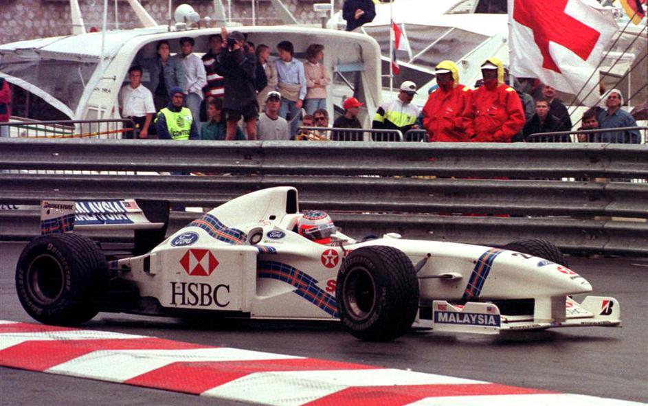 Nepozabni trenutki: VN Monaka, 1997 (Stewart) – Iz ozadja se na mokrem z odlično taktiko prebije na