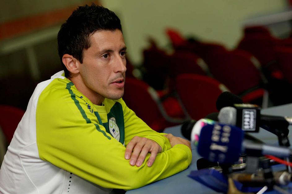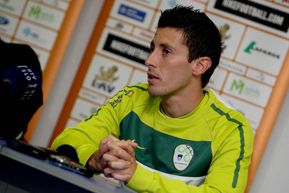 Kapetan Robi Koren na ponedeljkovi tiskovni konferenci v Beogradu.