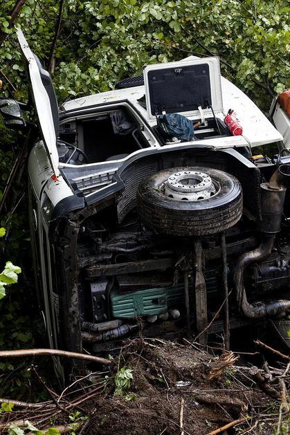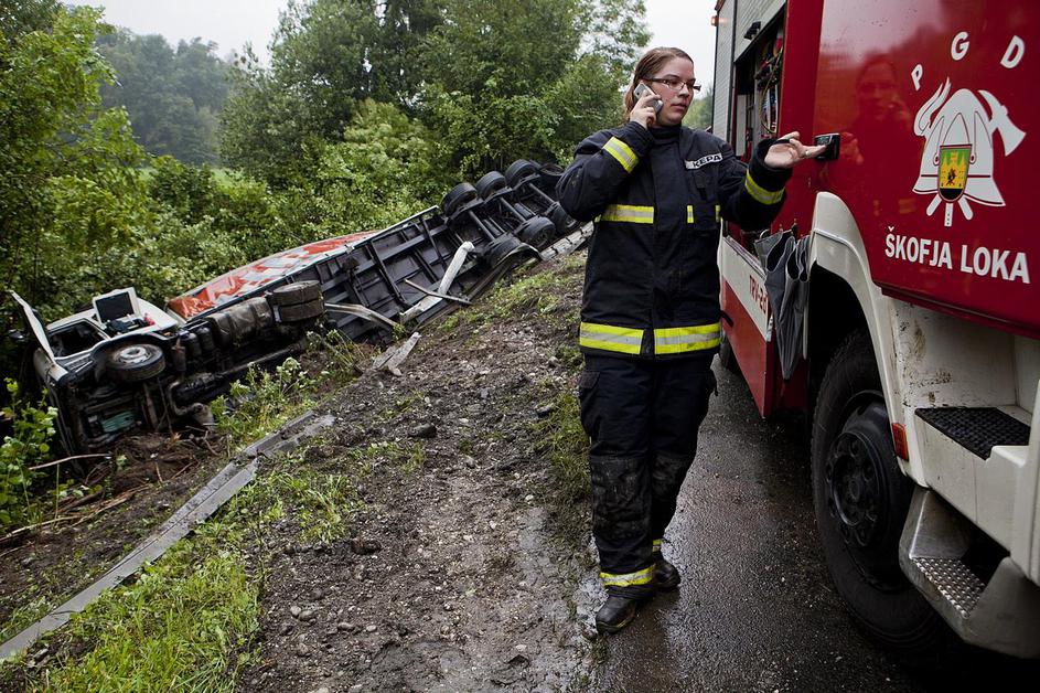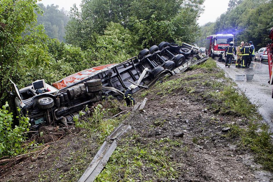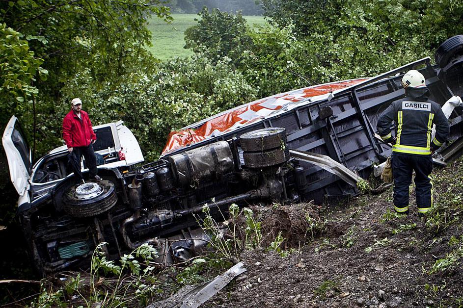 Tovornjak v jarek zaradi srne