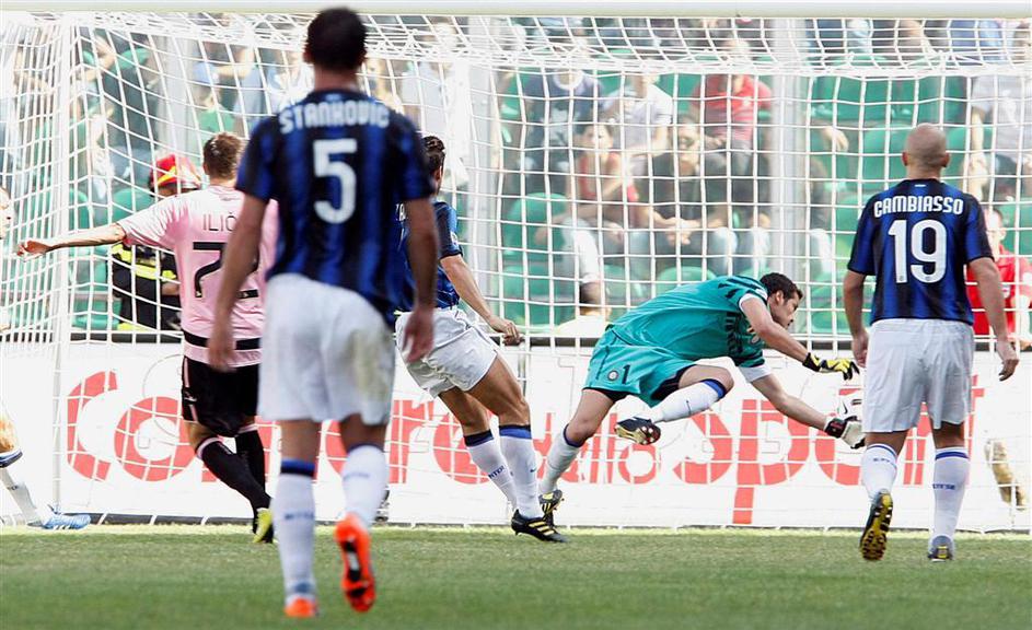 Josip Ilicic Julio Cesar Cambiasso Stankovic gol zadetek strel