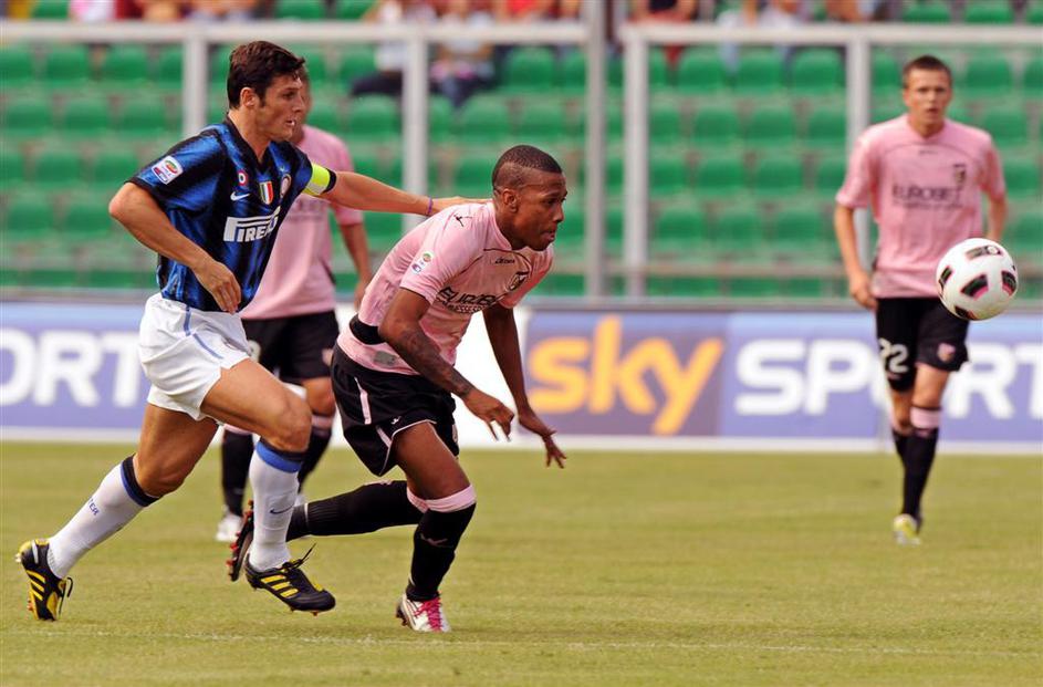 Iličić v duelu z Walterjem Samuelom.
