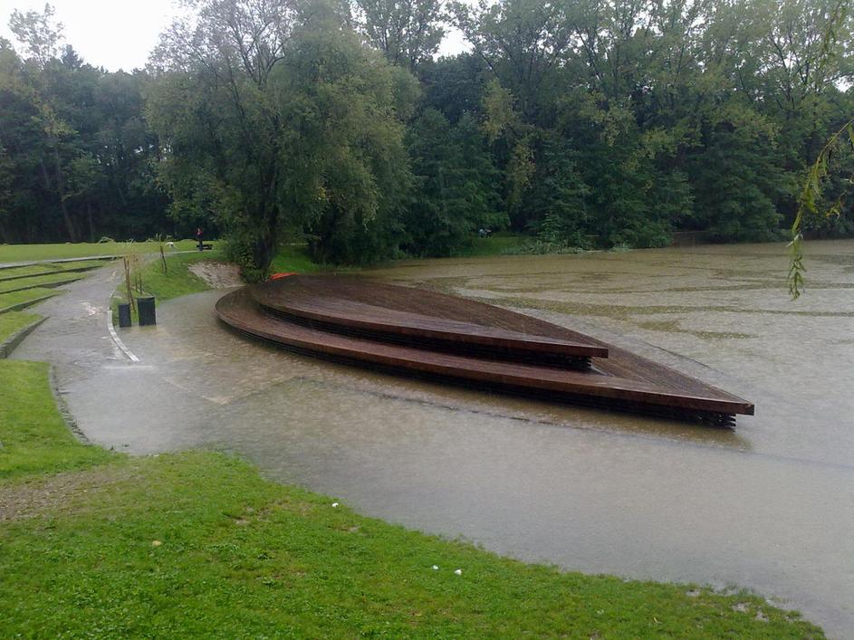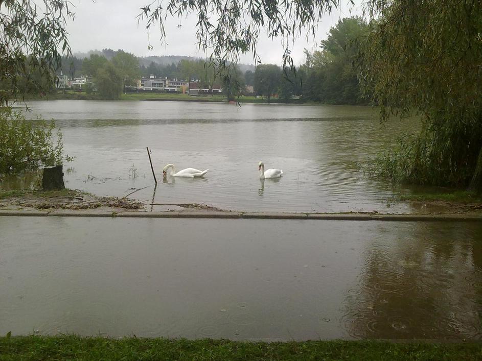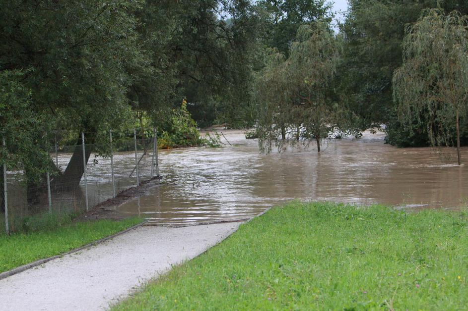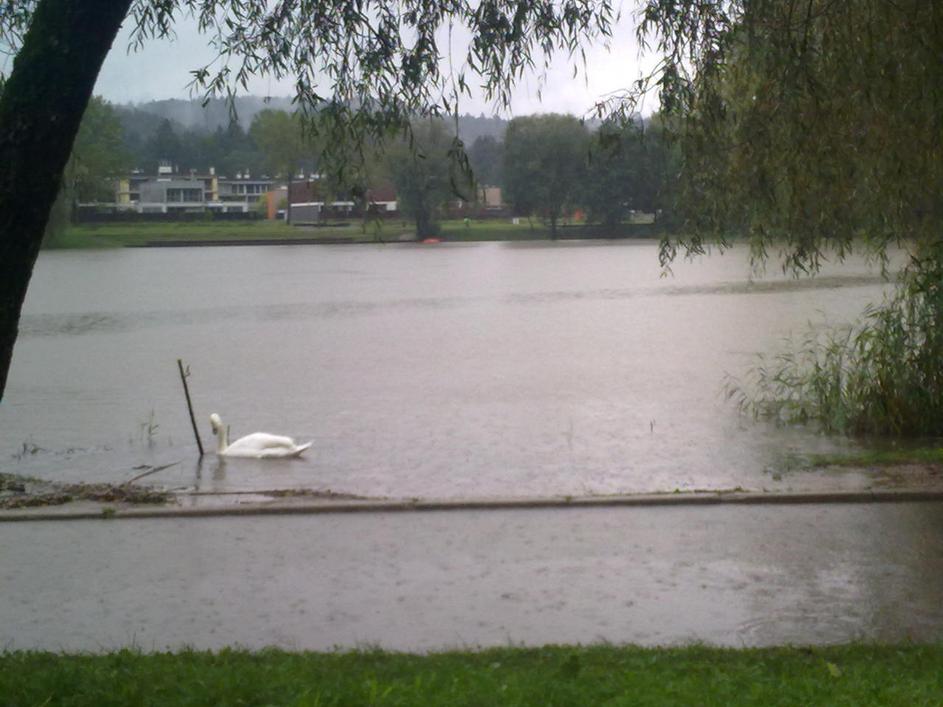 Poplavlja tudi Koseški bajer v Ljubljani