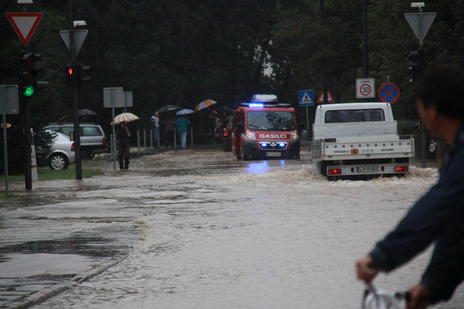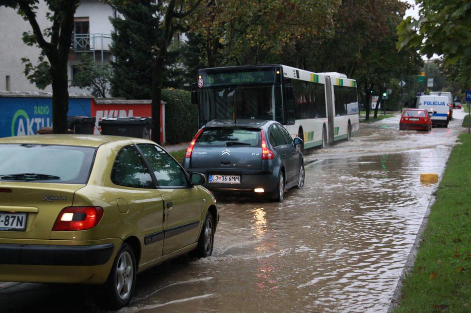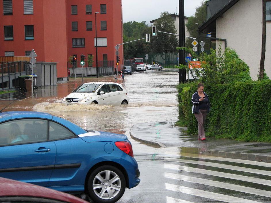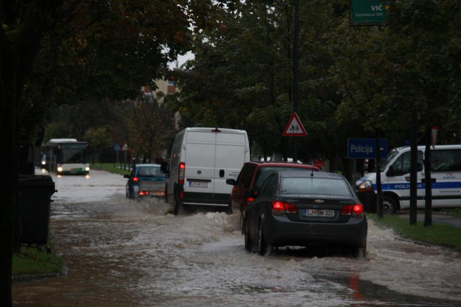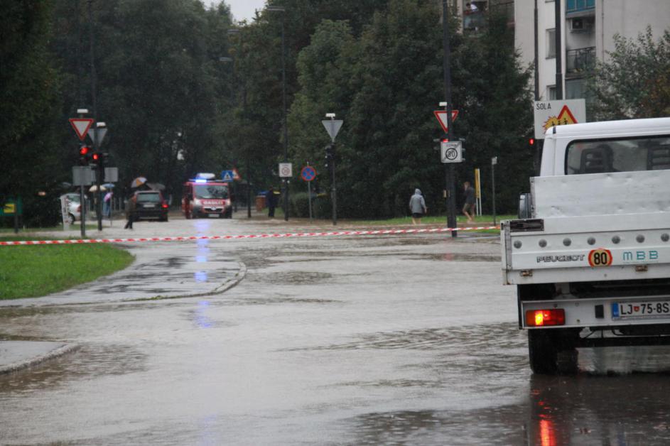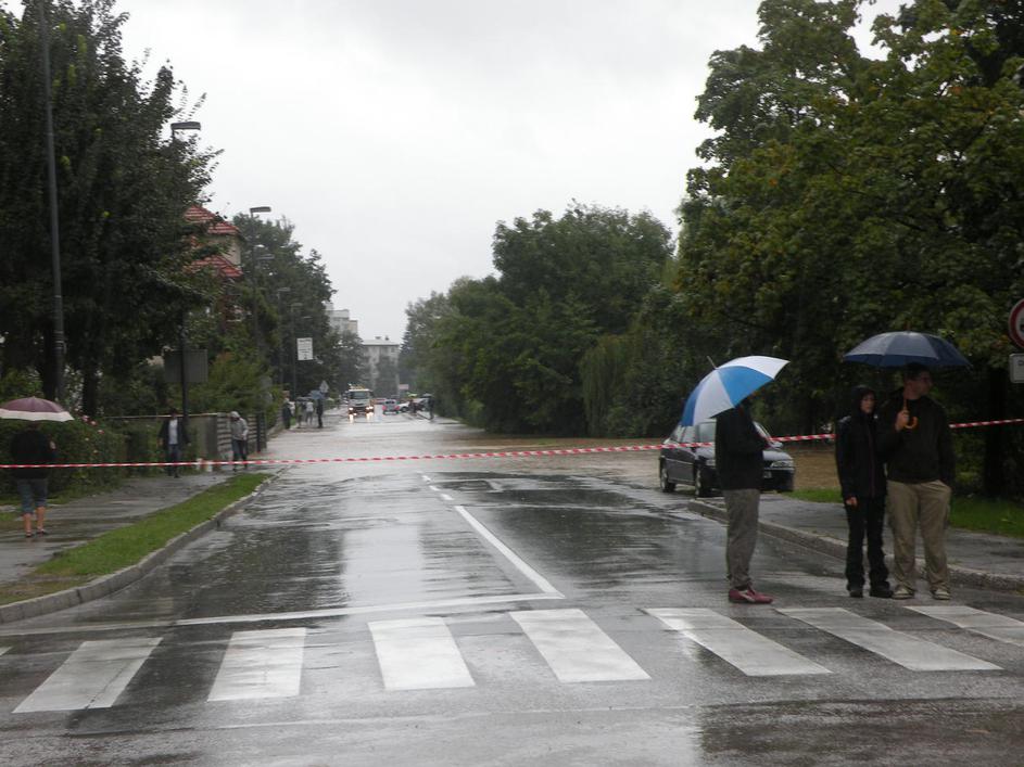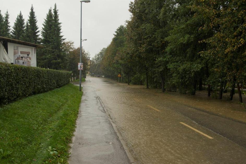Poplavljena Viška cesta v Ljubljani
