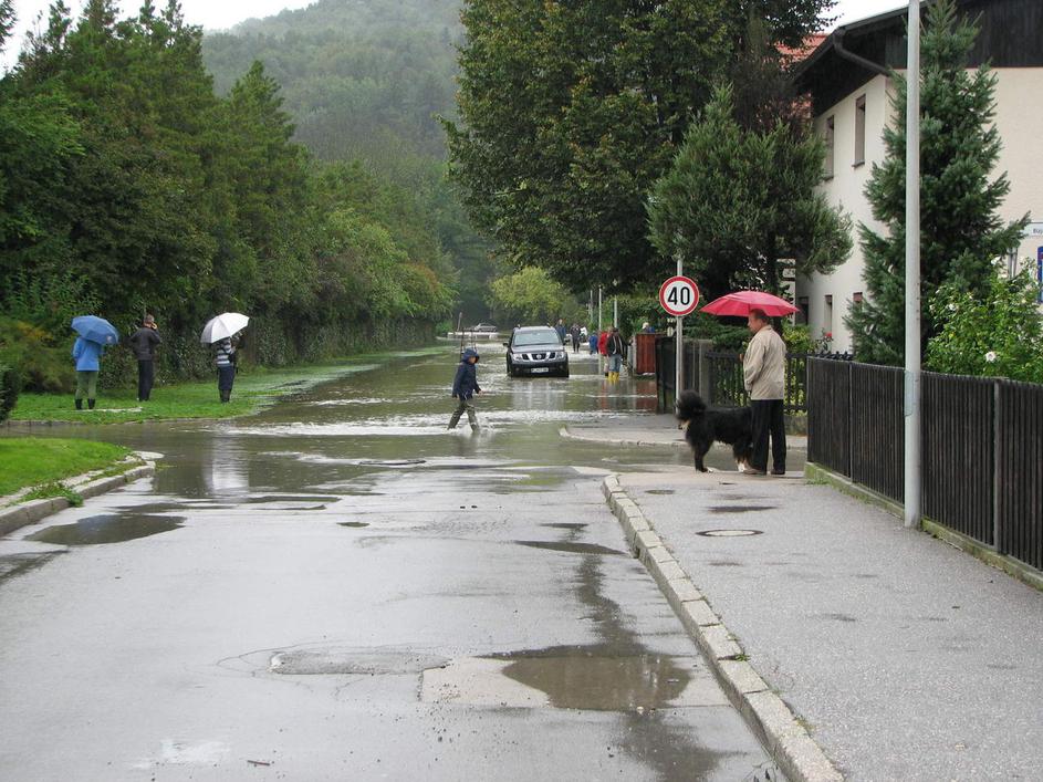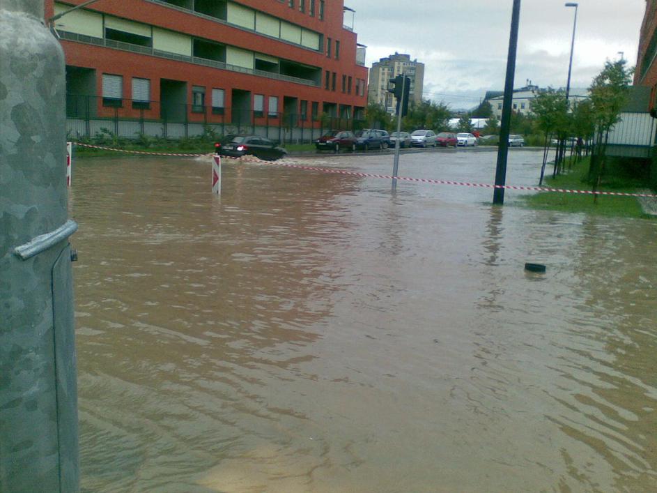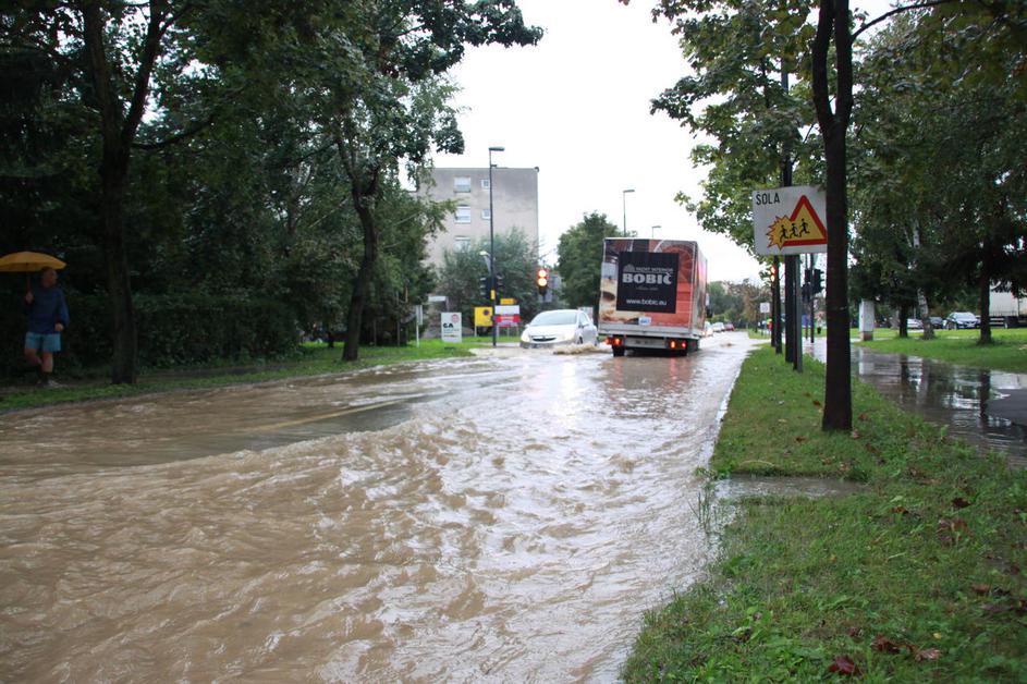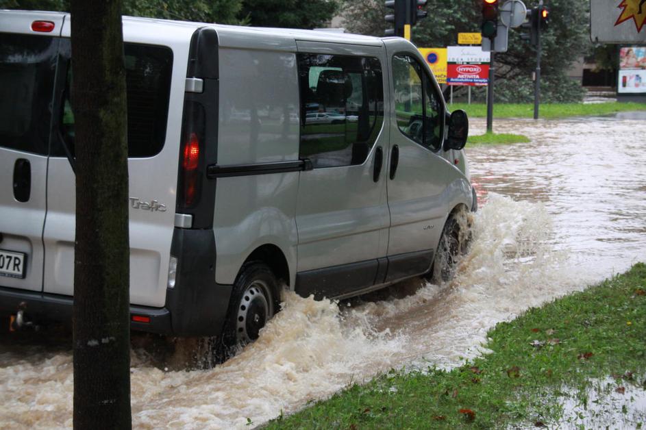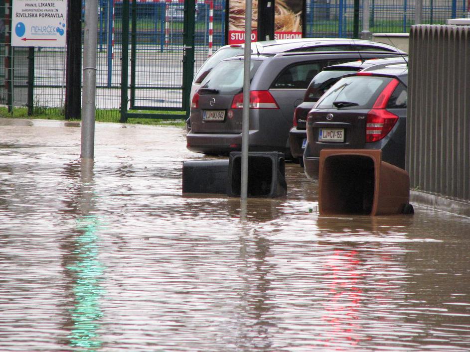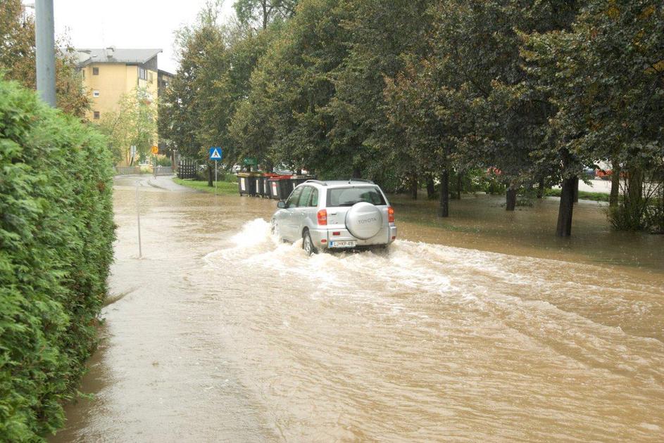 Poplavljena Viška cesta v Ljubljani