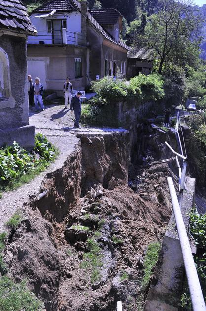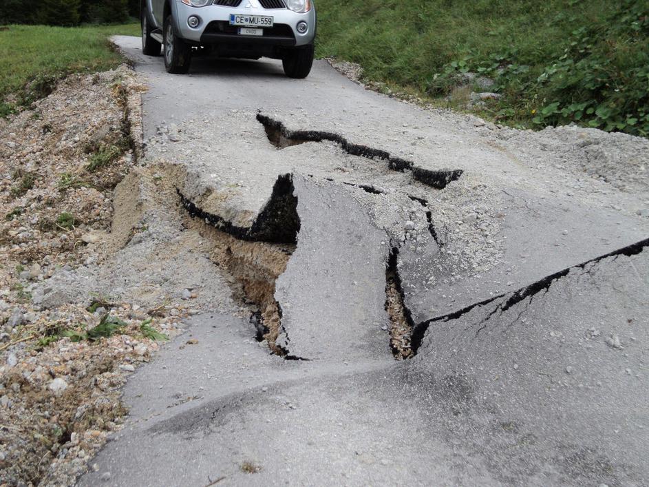 Plaz je uničil cesto med Pentrupertom in Trobnim Dolom pri kraju Jordan v Občini Laško.