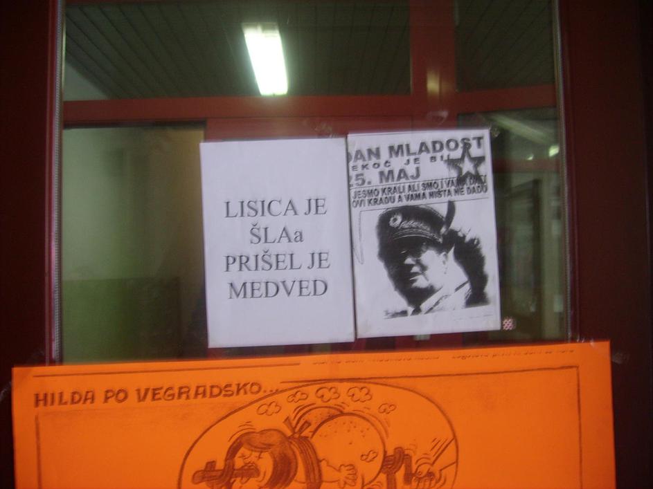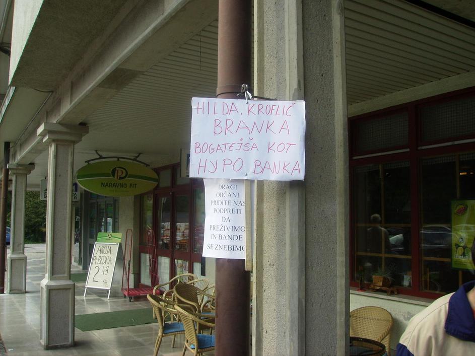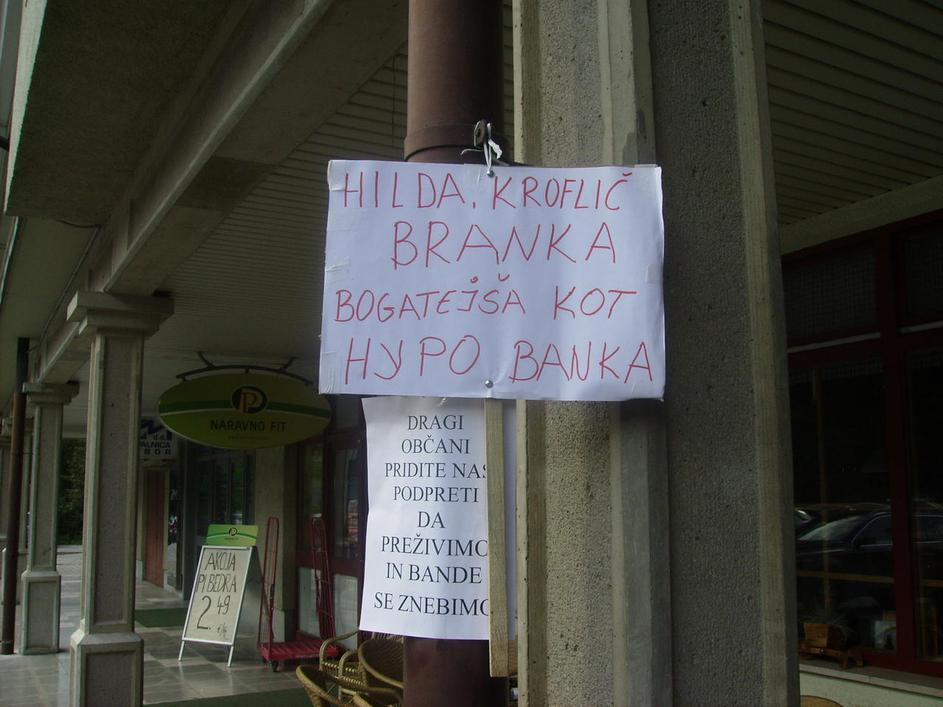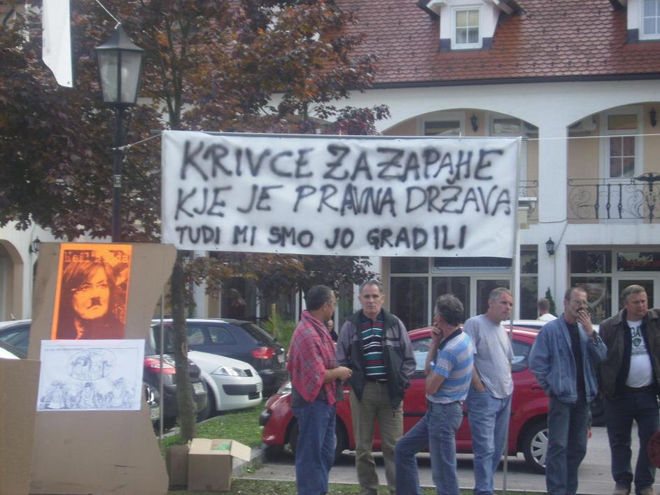 Vegrad, stavka delavcev, transparenti, Hilda Tovšak