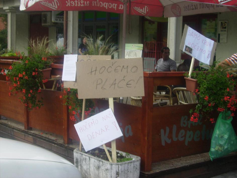 Vegrad, stavka delavcev, transparenti