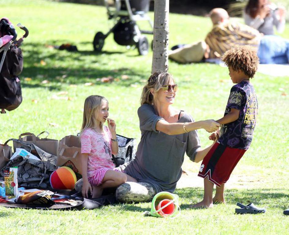 Heidi Klum na travniku s svojimi otroci