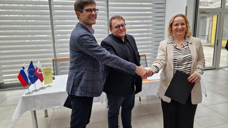 Župan Mestne občine Kranj Matjaž Rakovec, minister za solidarno prihodnost Simon Maljevac in direktorica Doma upokojencev Kranj Nadja Gantar so podpisali namero o izgradnji novega doma za starejše v Kranju.