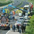 Foto Trčila tovornjak in avtobus Na cesti Domžale–Šentjakob sta trčila romunski avtobus in tovornjak. Prehitevalni pas odprli, kolone še ostajajo.