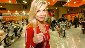 hostese Italijanke in motorji Na svetovni razstavi najnovejših motociklov v Milanu niso manjkale privlačne hostese. Italijanske so "zažigale".