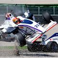 Video Grozljivo: dirkač poletel, a preživel Zadel je ob dirkalnik pred sabo. Vrglo ga je več kot 10 metrov visoko, letel je in se obrnil ter pristal v zaščitni ogr…