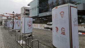 KRANJ Slovenski velikani pred kranjsko knjižnico Ducat portretov odpira letošnjo sezono razstav na prostem v Galeriji na mestu pred Mestno knjižnico Kranj.