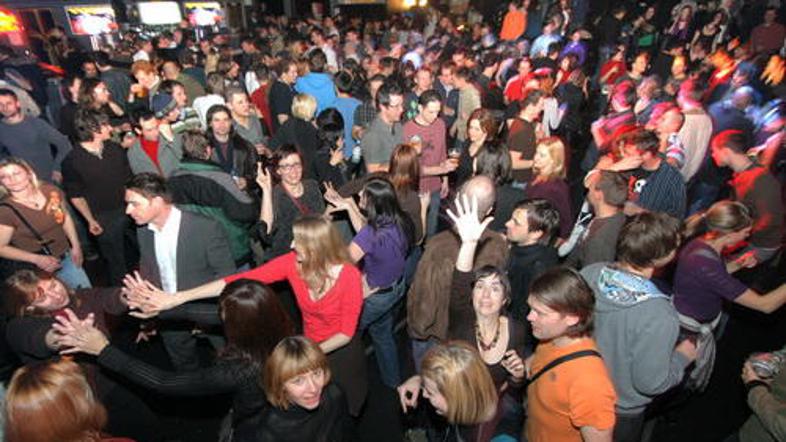 in obiskovalci, ki so svojo željo po žuru potešili v Cvetličarni. Bilo je poskočno in nabito