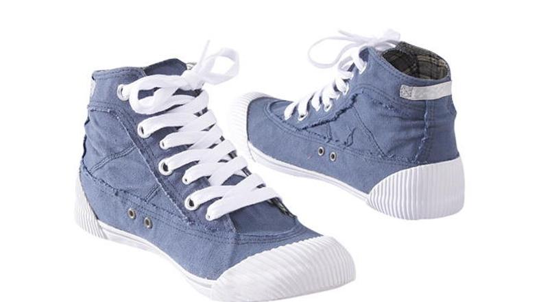 s kavbojkami, ki so pri gležnjih nekoliko stisnjene.