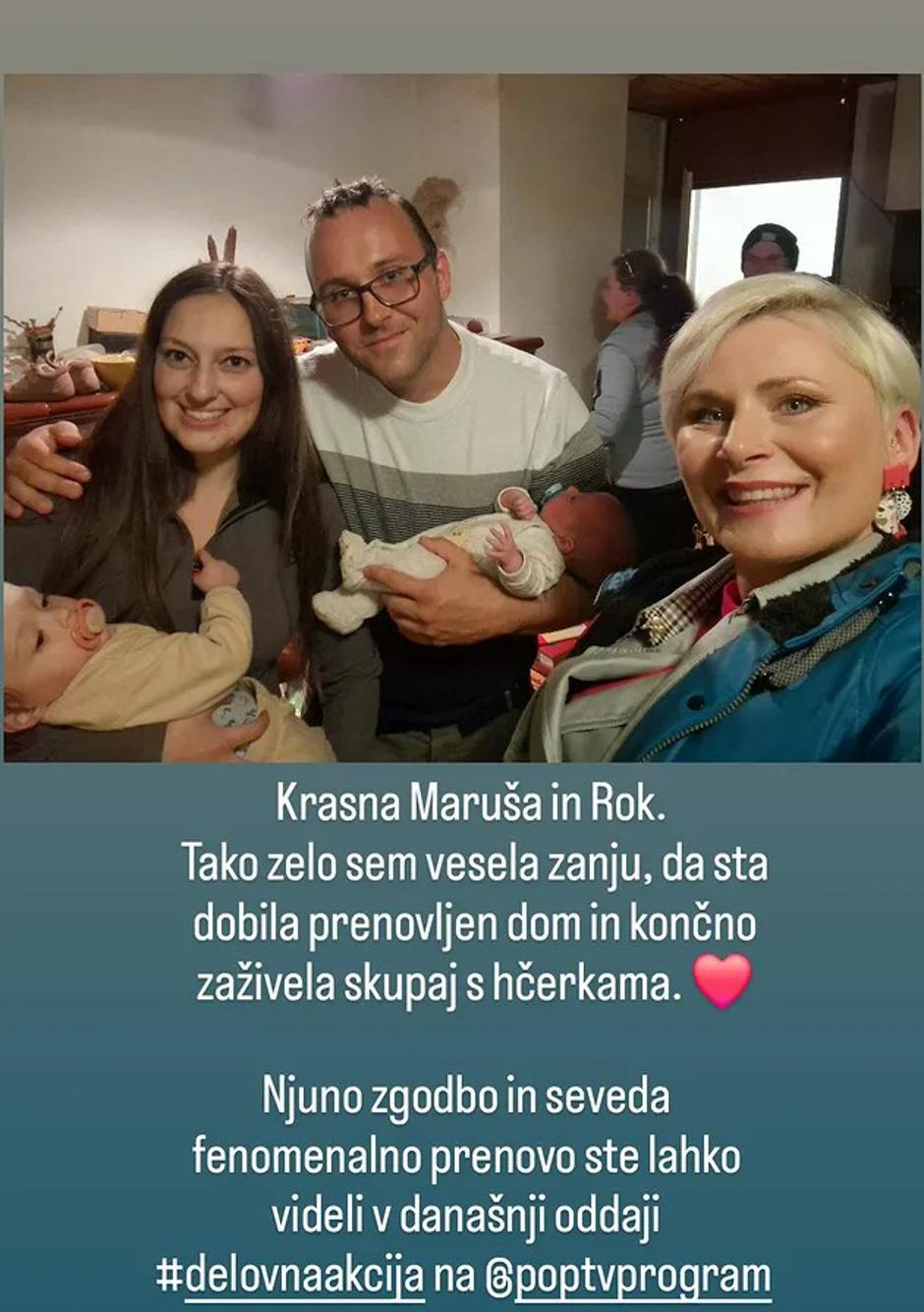 Paru v bran pa se je na družbenem omrežju sedaj postavila voditeljica in zapisala: "Krasna Maruša in Rok. Tako vesela sem zanju, da sta dobila prenovljen dom in končno zaživela skupaj s hčerkama. Njuno zgodbo in seveda fenomenalno prenovo ste lahko videli v današnji oddaji."