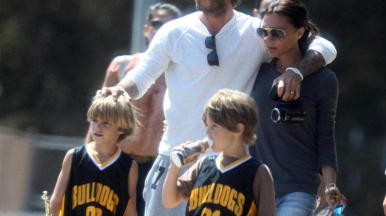 Družina Beckham se je odpravila na košarkarsko tekmo sina Romea. Spodbujali so ga vsi člani družine, Brooklyn in Cruz pa sta si čas krajšala v parku, kjer sta uživala tudi David in Victoria.
