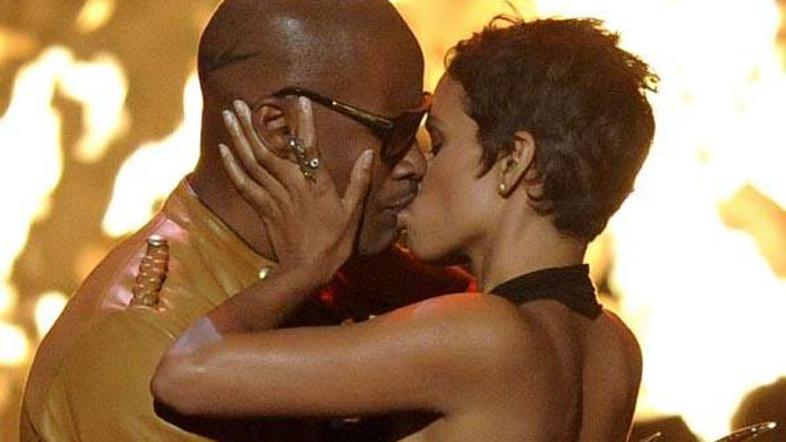 Hollywoodska zvezdnika Jamie Foxx in Halle Berry sta pokazala malo več, kot bi pričakovali. Na podelitvi filmskih nagrad Guys Choice v Culver Cityju je lepotica poleg priznanja za lepotico desetletja od temnopoltega šarmerja prejela še mnogo več. Jamie jo je objel, stisnil k sebi, zagrabil za zadnjico in vroče poljubil na ustnice. Halle mu ni ostala prav nič dolžna. Prijela ga je za mednožje in vrnila strasten poljub. Po izjemni predstavi se ji je Jamie zahvalil, da jo je lahko poljubil in otipal zadnjico, oba pa sta več kot očitno pri vsem skupaj uživala. Blagor njemu, si po vsej verjetnosti misli večina moških ...
