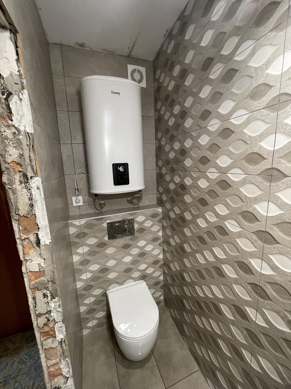V naslednjih dobrih 14 dneh so se poleg vodovodarja, ki je prevzel posel in usklajeval vse mojstre, zvrstili še električar, ki je hkrati tudi pleskar, dva polagalca ploščic, ki sta poskrbela tudi za vsa zidarska dela, in dva mojstra, ki sta vgradila nov podboj in vrata.