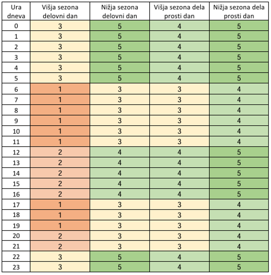 Novost ni le manj časovnih blokov znotraj dela prostih dni (prej 3 zdaj 2 bloka), temveč predvsem to, da bosta tarifno najdražja bloka 1 in 2 po novem veljala le v visoki sezoni. Zdaj blok 2 velja tudi v nizki sezoni.