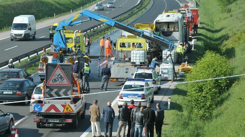 Voznik osebnega avtomobila je domnevno zaradi vožnje z neprilagojeno hitrostjo trčil v bočni del avtobusa, nakar pa je v zadnji del navedenega avtobusa prav tako domnevno zaradi neprilagojene hitrosti trčil voznik tovornega avtomobila. Pri tem je iz tovornega vozila iz naloženih posod iztekla do sedaj neugotovljena količina emulzije, ki naj ne bi bila škodljiva za ljudi.
