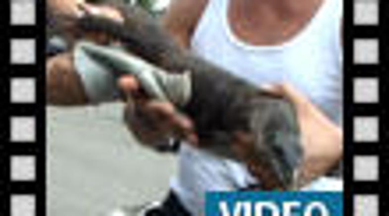 bodo prispeli gasilci in žival poskusili spraviti z drevesa."