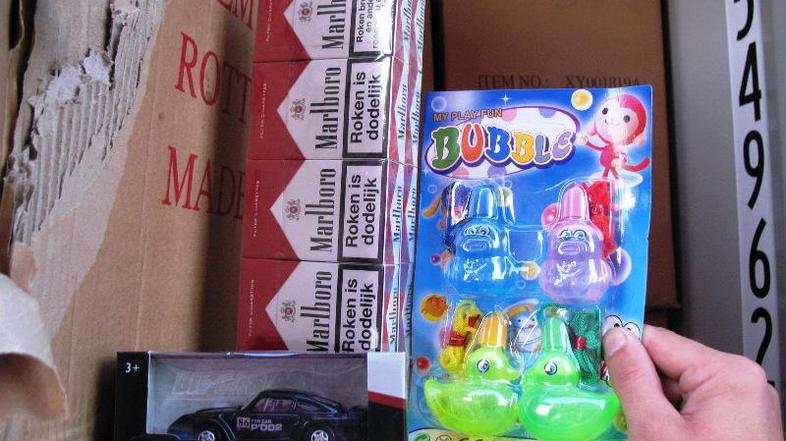 Cariniki so v zabojniku med igračami našli skoraj deset ton neprijavljenih cigaret. Pošiljka je bila namenjena na Nizozemsko in Češko. Skupna vrednost zasega je vredna preko milijon evrov.