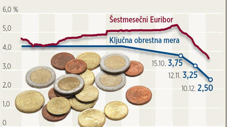 centralna banka (ECB) prejšnji četrtek znižala s 3,25 na 2,5 odstotka. Tako nizko je bila nazadnje