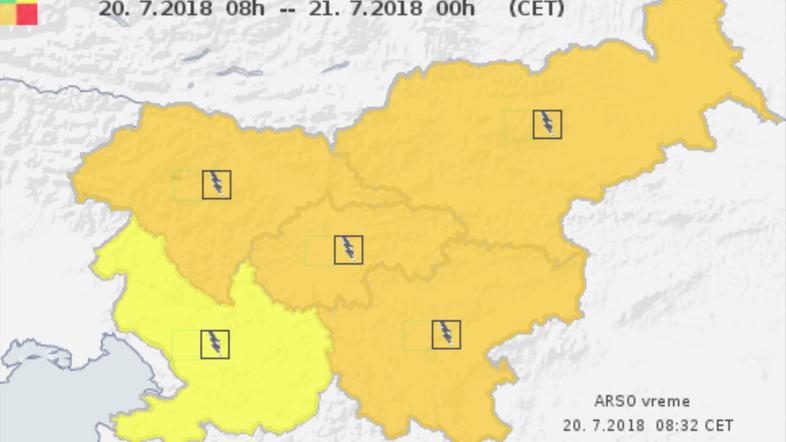 "Predvsem ponekod na severu, v osrednji Sloveniji, Zasavju, Posavju in delu Štajerske so popoldne možne tudi močnejše nevihte z močnimi nalivi, sunki nevihtnega piša in točo. Nevihtne bodo imele na območju Slovenije na voljo dovolj razpoložljive potencialne energije, poleg tega pa bo prisotnega tudi nekaj vetrovnega striženja, tja do 15 m/s," so zapisali na portalu neurje.si.