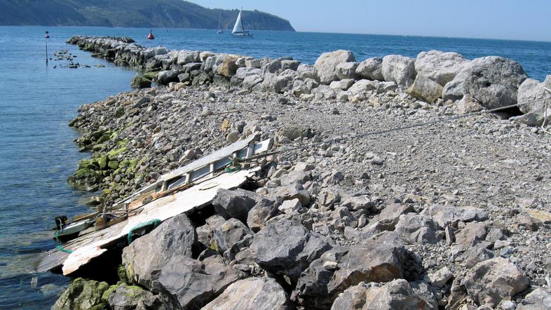 To na sliki ni nobena betonska plaža, ampak podaljšek ribiškega pomola, ki ščiti plovno pot v marino in kopalci na njem nimajo kaj iskati, tako, kot tudi ne sprehajalci.Ne delat panike tam, kjer ni treba. Strinjam pa se, da… ...prikaži več je treba razbitine pospraviti, kjer v okras ravno niso.