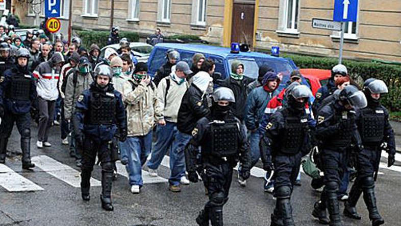 namreč policisti že pred srečanjem polne roke dela, tudi med tekmo pa niso mogli stati križem rok.