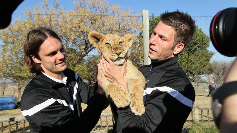 Slovenski nogometni reprezentanti so se po ponedeljkovem treningu končno lahko malce odklopili od nogometa. Za sprostitev so obiskali levji park v Johannesburgu, kjer so z zanimanjem opazovali odrasle in pestovali mlade leve, prizore pa so malce obogatile še žirafe, zebre, gepard ...