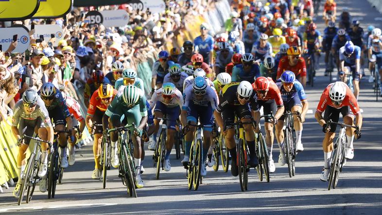* Izidi, 6. etapa, Macon - Dijon (163,5 km): 1. Dylan Groenewegen (Niz/Jayco-AlUla) 3:31:55 2. Biniam Girmay (Eri/Intermache-Wanty) isti čas 3. Fernando Gaviria (Kol/Movistar) 4. Phil Bauhaus (Nem/Bahrain-Victorious) 5. Arnaud De Lie (Bel/Lotto Dstny) 6. Wout Van Aert (Bel/Visma-Lease a Bike) 7. Arnaud Demare (Fra/Arkea-B&B Hotels) 8. Alexander Kristoff (Nor/Uno-X Mobility) 9. Pascal Ackermann (Nem/Israel-Premier Tech) 10. Piet Allegaert (Bel/Cofidis) ... 34. Tadej Pogačar (Slo/UAE Team Emirates) isti čas 57. Primož Roglič (Slo/Red Bull-BORA-hansgrohe) 104. Luka Mezgec (Slo/Jayco AlUla) 139. Matej Mohorič (Slo/Bahrain-Victorious) 1:35 174. Jan Tratnik (Slo/Visma-Lease a Bike) 4:36 ... - skupni vrstni red (6/21): 1. Tadej Pogačar (Slo/UAE Team Emirates) 26:47:19 2. Remco Evenepoel (Bel/Soudal Quick-Step) + 0:45 3. Jonas Vingegaard (Dan/Visma-Lease a Bike) 0:50 4. Juan Ayuso (Špa/UAE Team Emirates) 1:10 5. Primož Roglič (Slo/Red Bull-BORA-hansgrohe) 1:14 6. Carlos Rodriguez (Špa/Ineos Grenadiers) 1:16 7. Mikel Landa (Špa/Soudal Quick-Step) 1:32 8. Joao Almeida (Por/UAE Team Emirates) isti čas 9. Giulio Ciccone (Ita/Lidl-Trek) 3:20 10. Egan Bernal (Kol/Ineos Grenadiers) 3:21 ... 74. Jan Tratnik (Slo/Visma-Lease a Bike) 48:12 101. Matej Mohorič (Slo/Bahrain-Victorious) 1:02:08 125. Luka Mezgec (Slo/Jayco AlUla) 1:13:07 ...