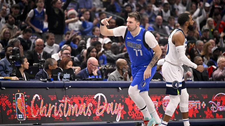 Košarkarji Dallas Mavericks slovenskega zvezdnika Luke Dončića so na božični dan v severnoameriški ligi NBA na domačem parketu izgubili proti Minnesoti Timberwolves z 99:105. Slovenski as je za Dallas odigral dobrih 16 minut in dosegel 14 točk, preden je moral parket zapustiti zaradi poškodbe.